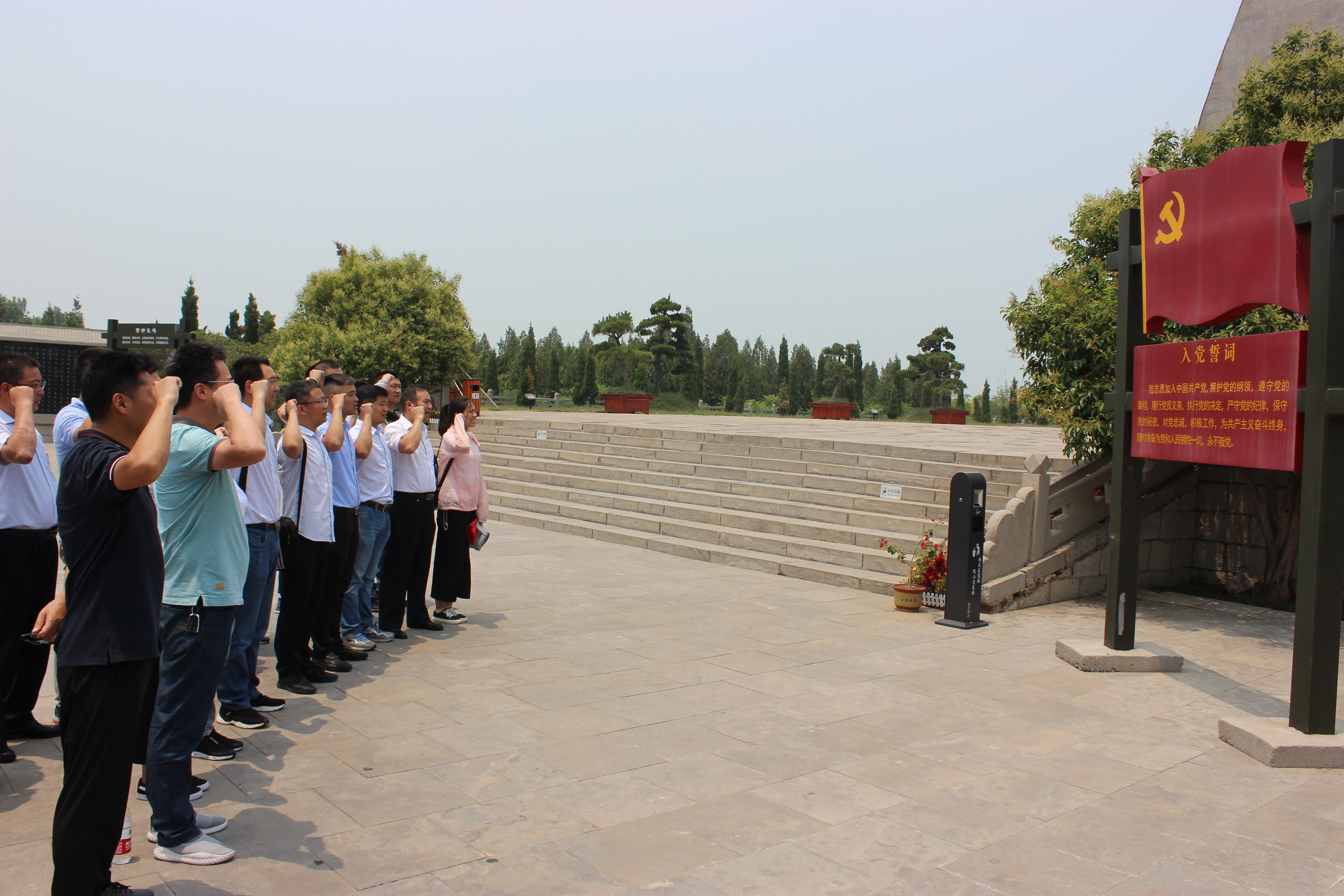 在鐵道游擊隊紀念碑前,黨員們面對鮮紅的黨旗,莊嚴的舉起右手,重溫入黨誓詞。我志愿加入中國共產(chǎn)黨,擁護黨的綱領(lǐng),遵守黨的章程,履行黨員義務(wù)……隨時準備為黨和人民犧牲一切,永不叛黨。一聲聲鏗鏘有力的誓言響徹微山湖鐵道游擊隊紀念園,表達了黨員們對黨的無限忠誠,對鐵道游擊隊英雄們的崇高敬意。