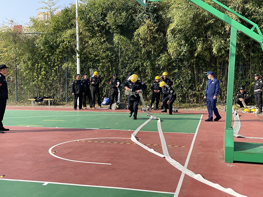 本次安保練兵大比武活動共有4家參賽隊伍,分別進(jìn)行了隊列展示、室內(nèi)消防栓講解、體能比拼、疏散救援操等比賽。