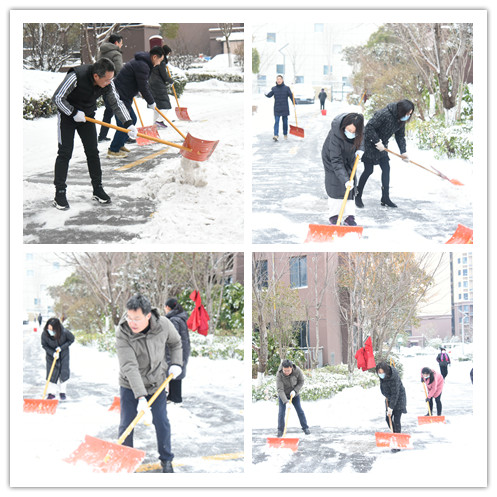 清雪現(xiàn)場,大家不畏嚴寒、齊心協(xié)力,及時對園區(qū)主干道、各物業(yè)項目內(nèi)部道路的積雪進行清理,保障了群眾的出入安全。此外,建發(fā)公司還充分利用微信群進行宣傳,及時提醒業(yè)主注意雪天道路安全。