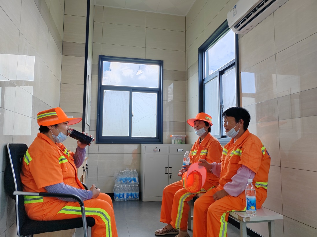“清涼驛站”全開放,避暑納涼有去處。配有空調(diào)、防暑降溫藥品、飲用水的31座公共廁所的休息室、管理間全部對外開放,工人作業(yè)間歇,可以隨時(shí)到“驛站”避暑納涼,讓一線工人在酷暑中享受一絲清涼。