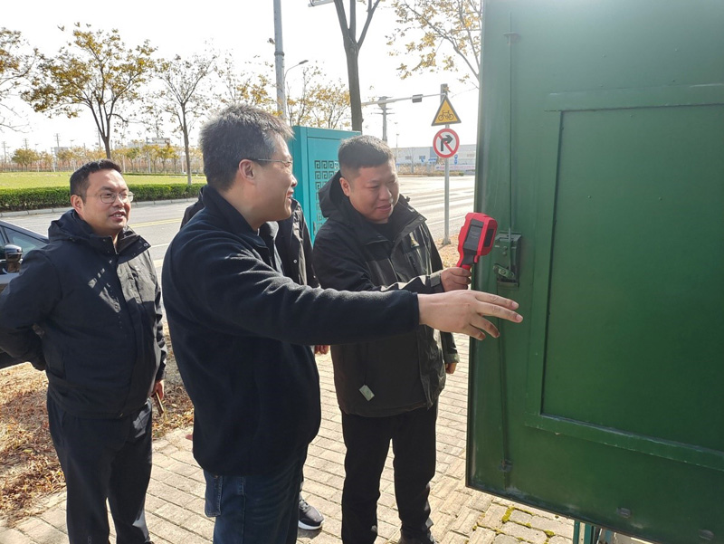 在檢查垃圾中轉(zhuǎn)站、路燈箱變、防汛閘站、河道駁岸時(shí),檢查組認(rèn)真查看安全措施是否按要求嚴(yán)格執(zhí)行到位,運(yùn)行巡檢記錄是否齊全,救生器材是否定期進(jìn)行檢查、維護(hù),閘站消防沙池、消防锨、消防桶等配備是否齊全到位;檢查組還詳細(xì)了解了垃圾壓縮設(shè)備電子圍欄報(bào)警裝置安裝使用情況,并現(xiàn)場使用紅外成像儀監(jiān)測路燈箱變運(yùn)行情況。