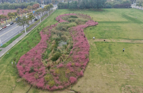 在中央商區(qū),成片的粉黛亂子草正值最佳觀賞期,云霧般的粉色花穗在陽(yáng)光下輕盈搖曳,已成為市民爭(zhēng)相打卡的“網(wǎng)紅”景點(diǎn)。“粉黛亂子草觀賞性雖高,養(yǎng)護(hù)卻需格外精心。”建發(fā)公司相關(guān)負(fù)責(zé)人介紹,為維持其最佳觀賞狀態(tài),園區(qū)采取了分區(qū)、分時(shí)的精細(xì)化養(yǎng)護(hù)策略。盛花期期間,養(yǎng)護(hù)人員會(huì)精準(zhǔn)控制澆水量,避免過(guò)多水分影響花穗形態(tài);雨季則及時(shí)排水,嚴(yán)防積水導(dǎo)致?tīng)€根。同時(shí),還安排了專人全天巡視,引導(dǎo)游客在指定區(qū)域文明觀賞,并對(duì)局部受損區(qū)域?qū)嵤?ldquo;點(diǎn)對(duì)點(diǎn)”修復(fù),確保每一株粉黛都能以最美姿態(tài),展現(xiàn)秋天的溫柔與浪漫。
