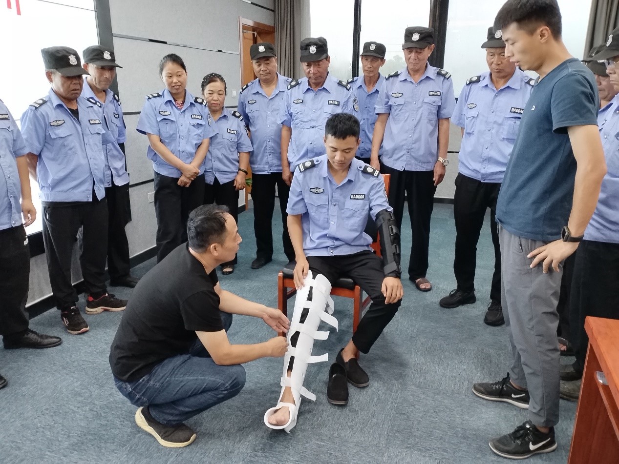 隨后,李建良還結(jié)合當(dāng)前實(shí)際,告知大家各類外傷緊急救護(hù)處理的方法,從爆炸傷、燙傷、骨折、開放性損傷的急救處理分別講解了傷口清理、壓迫止血、三角帶包扎、骨折固定等方法。