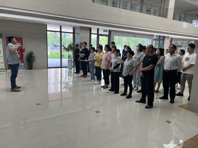 演練開始前,生產(chǎn)力中心企業(yè)代表、保安、保潔人員集中學(xué)習(xí)了火災(zāi)預(yù)防、火場疏散逃生的基本常識以及如何撲救初起火災(zāi)。