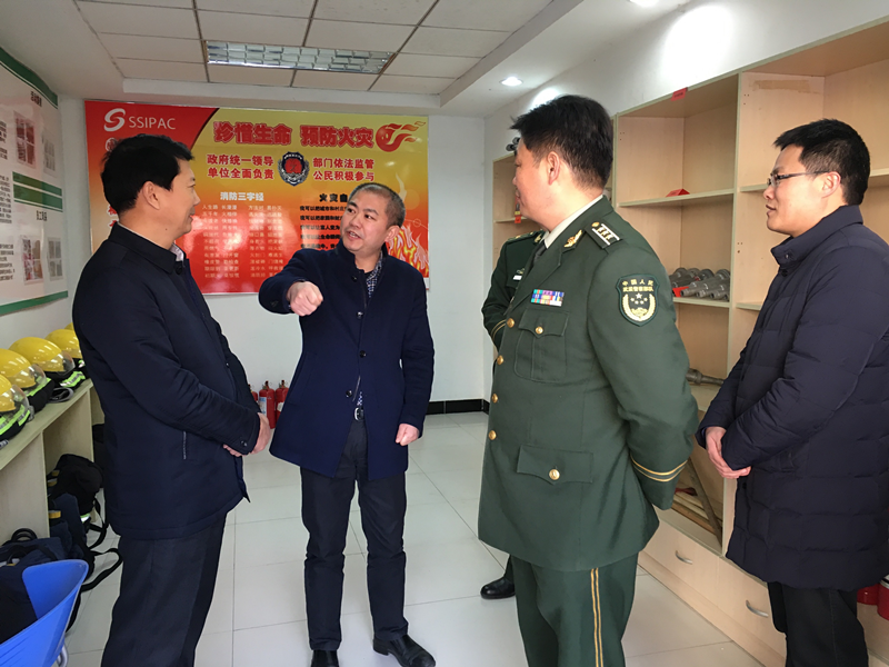1月31日,市政府副秘書長王永一行蒞臨園區(qū)公舍,督導(dǎo)檢查公司年終消防安全工作。宿遷市消防支隊支隊長李榮、蘇宿工業(yè)園區(qū)管委會黨工委委員、管委會副主任戈亮及其他相關(guān)人員陪同檢查。