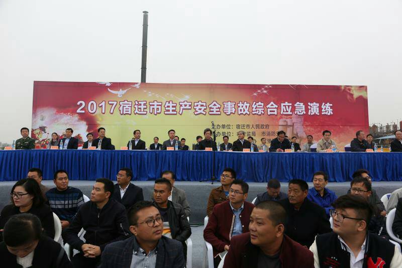 10月17日上午10時(shí),2017宿遷市生產(chǎn)安全事故綜合應(yīng)急救援演練活動(dòng)在宿遷生態(tài)化工科技產(chǎn)業(yè)園隆重舉行。此次活動(dòng)由宿遷市人民政府主辦,市安監(jiān)局、市消防支隊(duì)、市應(yīng)急辦、宿豫區(qū)人民政府承辦。省安監(jiān)局副局長(zhǎng)趙啟鳳,省政府總值班室副主任薛廣建,市委副書記、市長(zhǎng)王天琦,現(xiàn)場(chǎng)觀摩演練。市直有關(guān)單位,以及各縣、區(qū),市各開發(fā)區(qū)、新區(qū)、園區(qū)相關(guān)負(fù)責(zé)人現(xiàn)場(chǎng)觀摩演練。