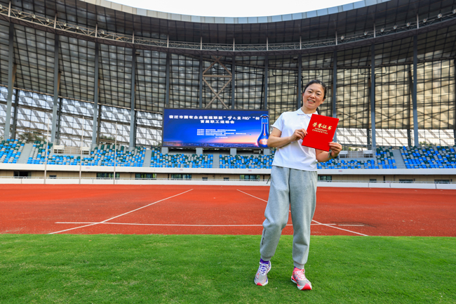 運動場上,建發(fā)公司桑曉芳以5分57秒33毫秒領(lǐng)先第二名12秒之多的絕對優(yōu)勢斬獲女子青年組1500米田徑賽金牌。