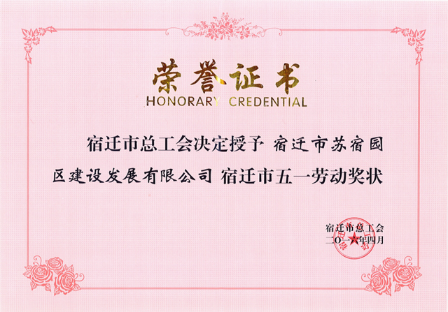 4月29日,在宿遷市慶祝五一國際勞動節(jié)暨表彰五一勞動獎大會上,公司被授予宿遷市“五一勞動獎狀”榮譽稱號。