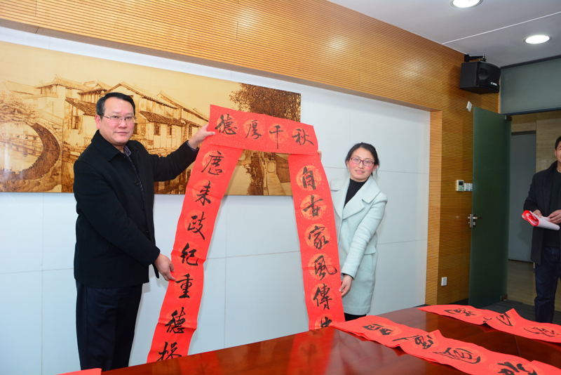 “勤儉持家家興旺,清廉愛(ài)國(guó)國(guó)運(yùn)昌”“辭舊迎新山清水秀景色美,繼往開(kāi)來(lái)全民尚廉風(fēng)氣新”……為進(jìn)一步加強(qiáng)春節(jié)前后反腐倡廉宣傳教育,營(yíng)造濃厚的節(jié)日倡廉氛圍,在農(nóng)歷酉雞年即將來(lái)臨之際,園區(qū)組織黨員干部和社區(qū)居民書(shū)法愛(ài)好者開(kāi)展寫(xiě)廉政春聯(lián)活動(dòng)。副市長(zhǎng)、園區(qū)黨工委、管委會(huì)主任方文浜等工委領(lǐng)導(dǎo)親自為園區(qū)干部群眾送上新春廉聯(lián)。